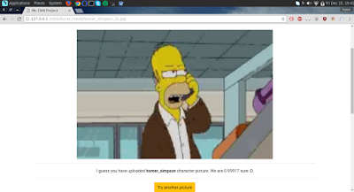Anyway we end up doing a web app that has three parts : the first part same as the one I did before dogs vs cats we wanted to get an idea about ML and this time I got better accuracy and we did the training in the GPU it was really fast, not like the last time in CPU it took us less than a 1 hours, not 24 hours xD, The second part we wanted to do a facial recognition but we didn't find enough data so we kept looking and in kaggle we found a good data set that has The Simpsons TV show characters, we used it to make a facial recognition for the Simpsons, and the last part was using a pre-trained models like VGG-16, CIFAR-10... that could detect objects in any given image.
